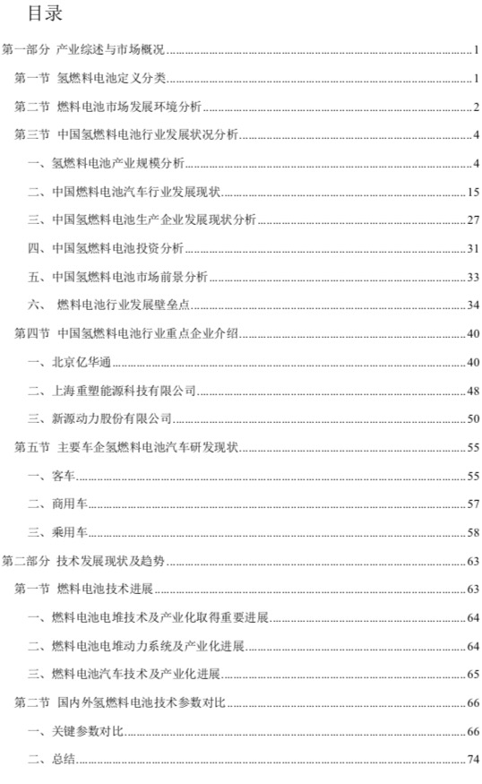 高維咨詢發(fā)布的《2019年中國氫燃料電池產業(yè)發(fā)展研究報告》共六個部分。從氫燃料電池產業(yè)政策、市場現(xiàn)狀、上下游配套、發(fā)展前景分析和重點企業(yè)等幾個方面全景展示中國燃料電池市場發(fā)展現(xiàn)狀。